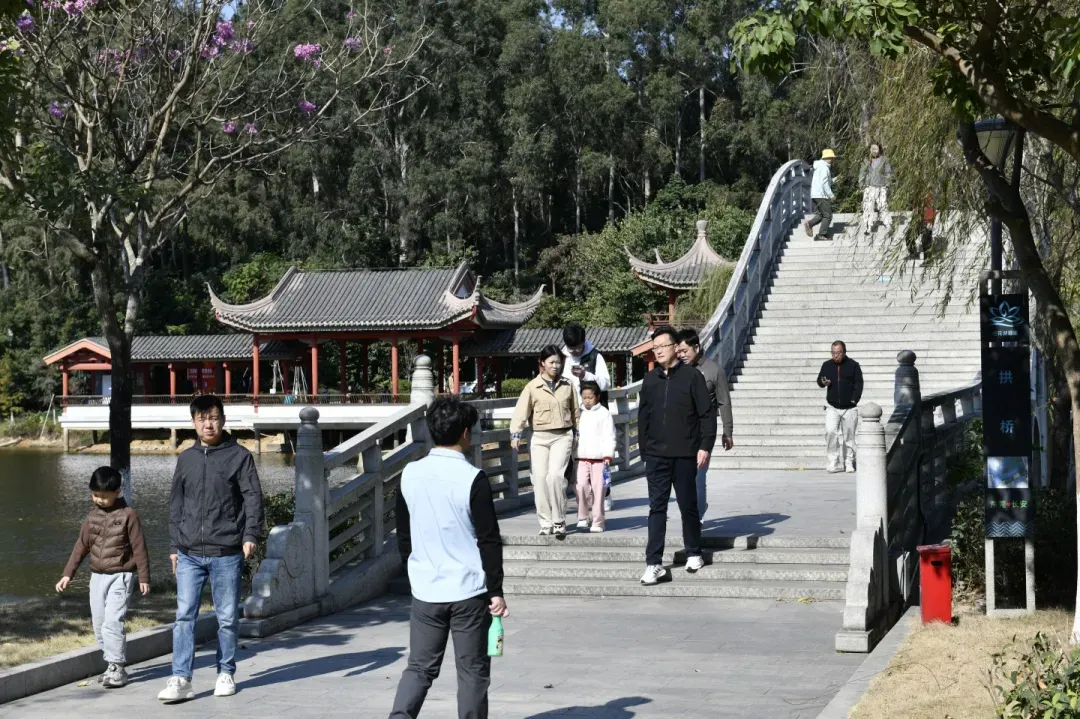 沿着莲花湖绿道漫步,不少市民举家出游,欣赏沿途风景。市民陈女士推着婴儿车与家人同行:“绿道环境优美,设施完善,特别适合带孩子来。新的一年,希望家人平安顺遂,也希望长安越来越美。”