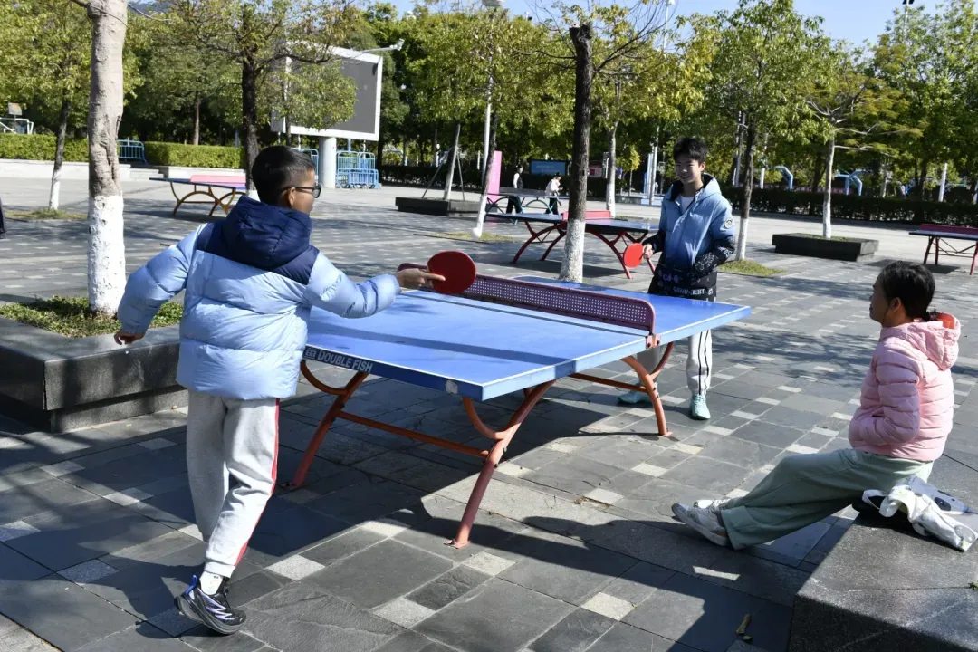 在长安体育公园,记者看到,休闲运动的市民比平日有所增多,其中,儿童娱乐区域成为了孩子们的“快乐星球”。市民李先生和朋友在附近的乒乓球场进行着欢乐友谊赛,他说,用运动开启新的一年特别有意义,希望2026年全家人身体健康。