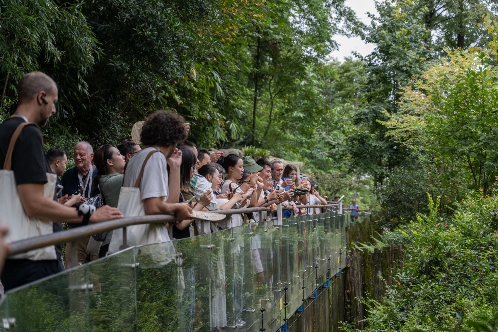 9月12日,在成都大熊猫繁育研究基地都江堰野放繁育研究中心(熊猫谷),第二届金熊猫奖配套活动“我与熊猫面对面”参观活动举行,向世界讲述大熊猫故事,传递生态文明和传统文化的魅力。